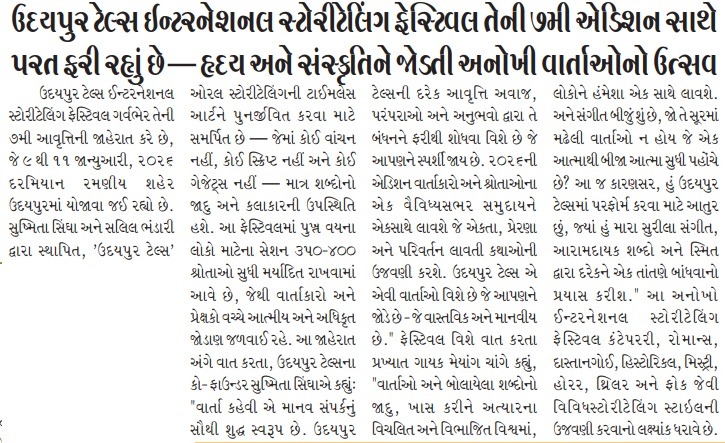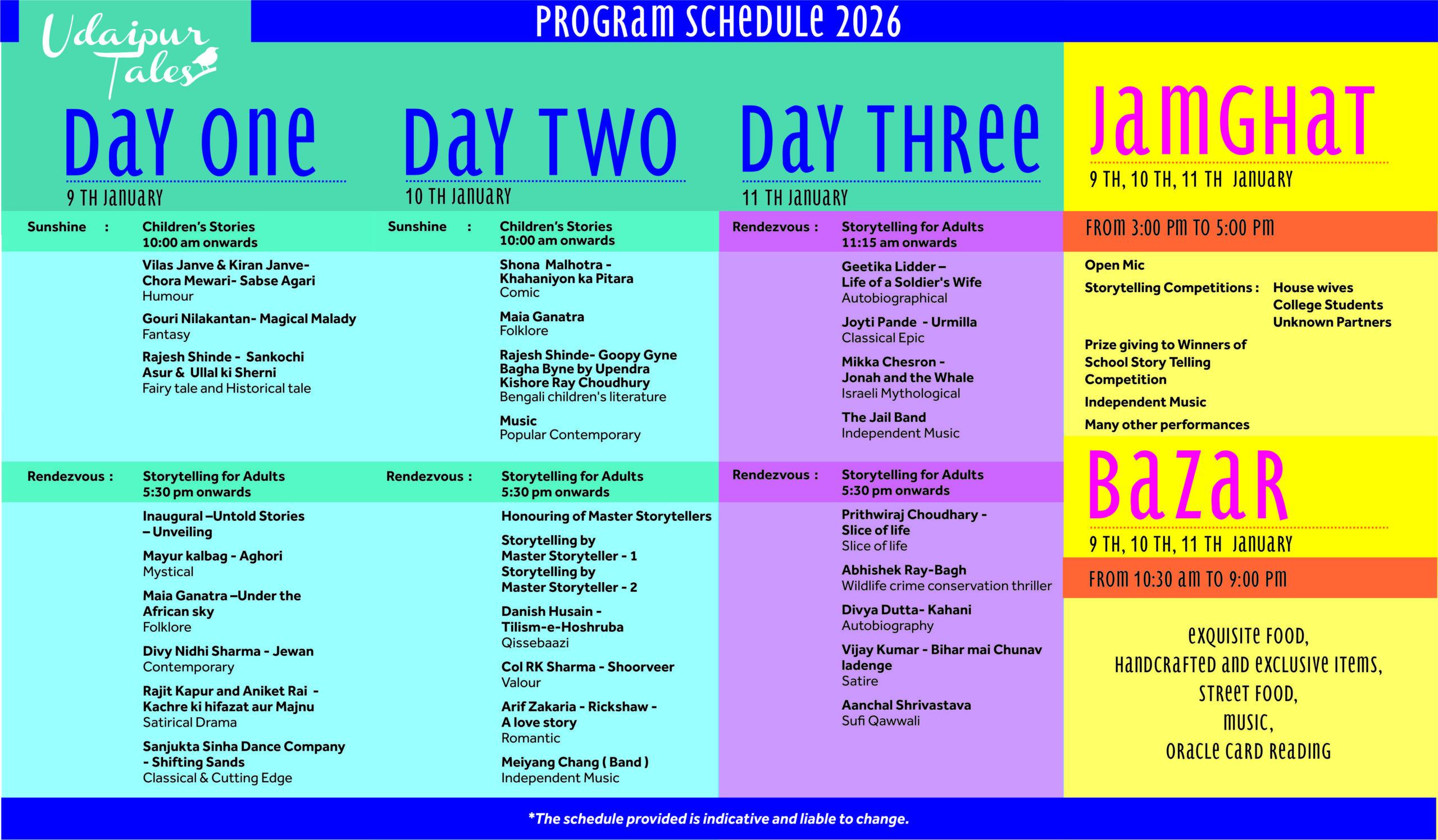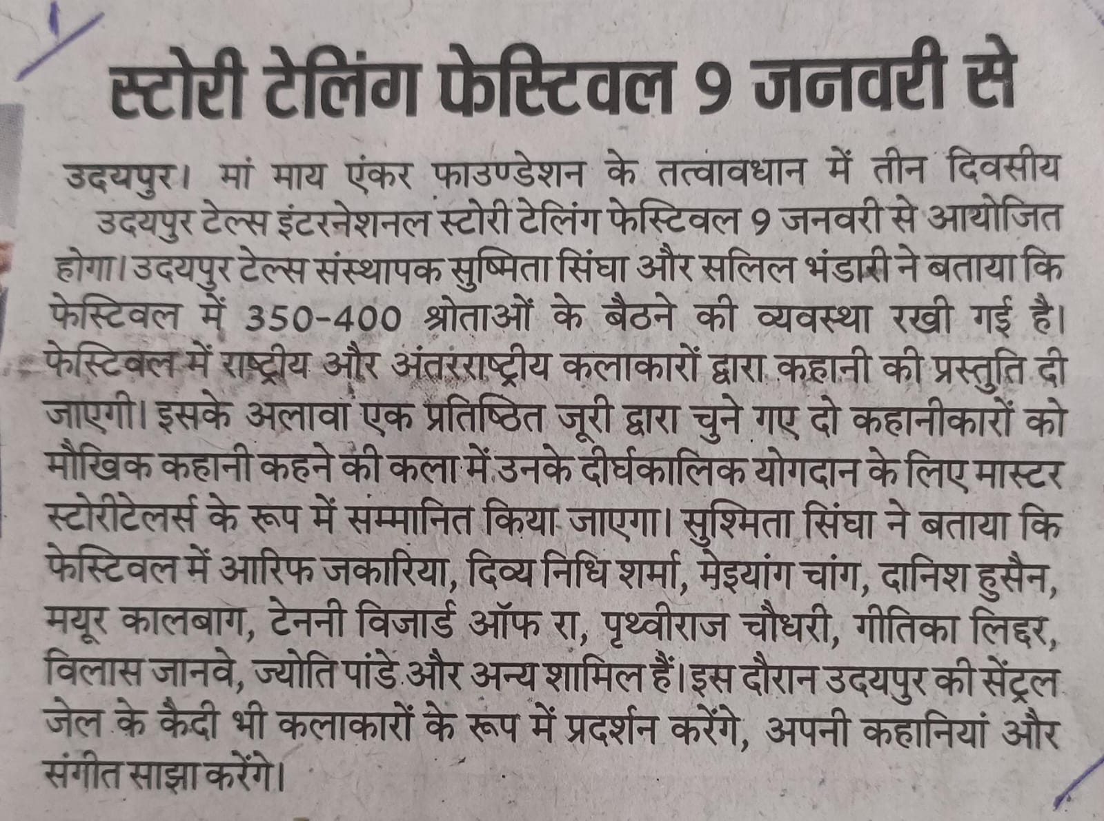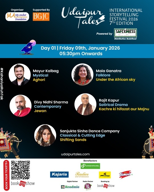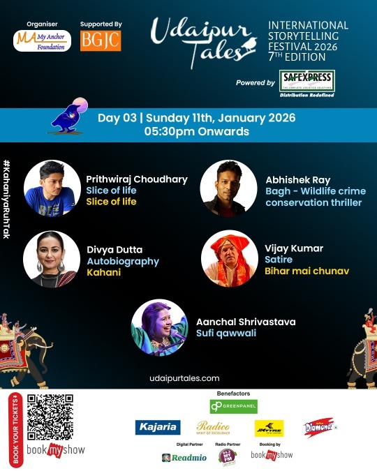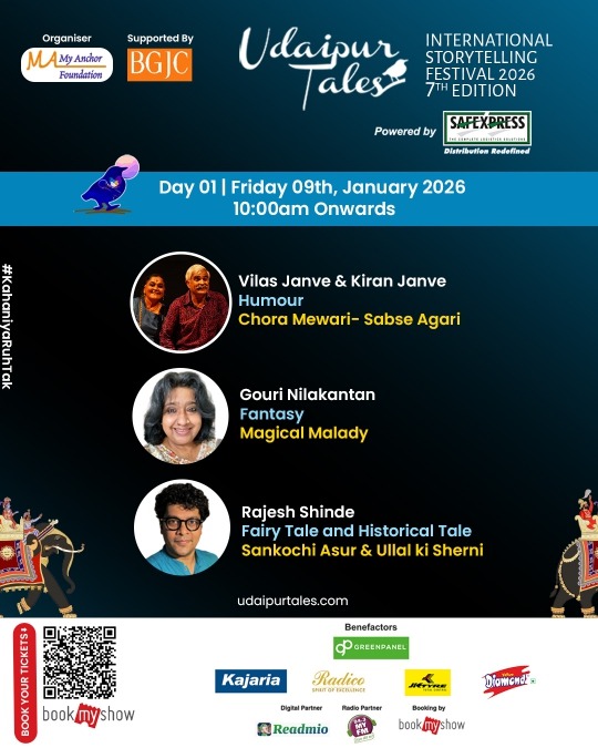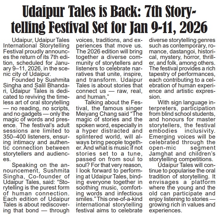 We are delighted to announce the 7th edition of Udaipur Tales, International Storytelling Festival being organised on 9th, 10th & 11th January, 2026 in Udaipur.